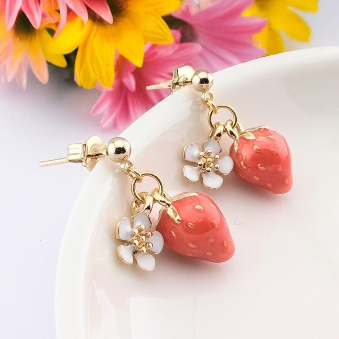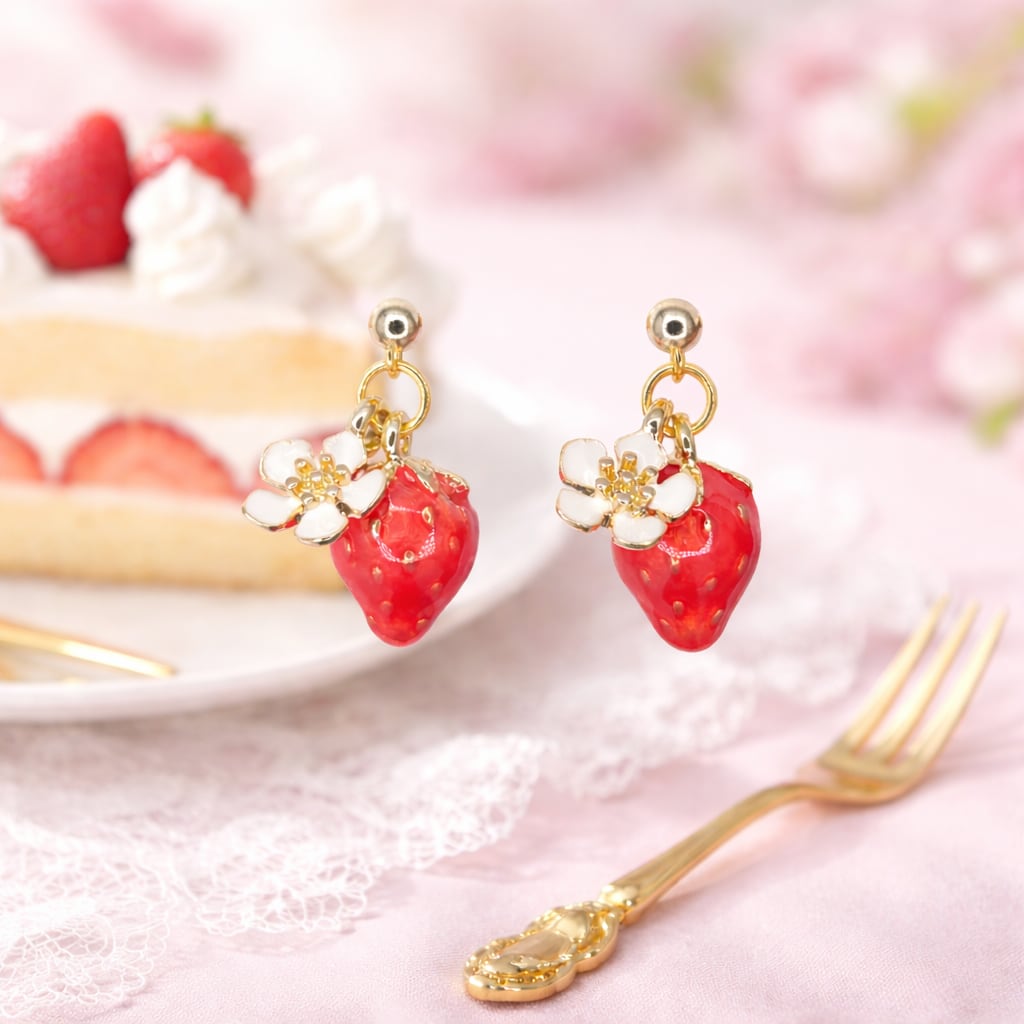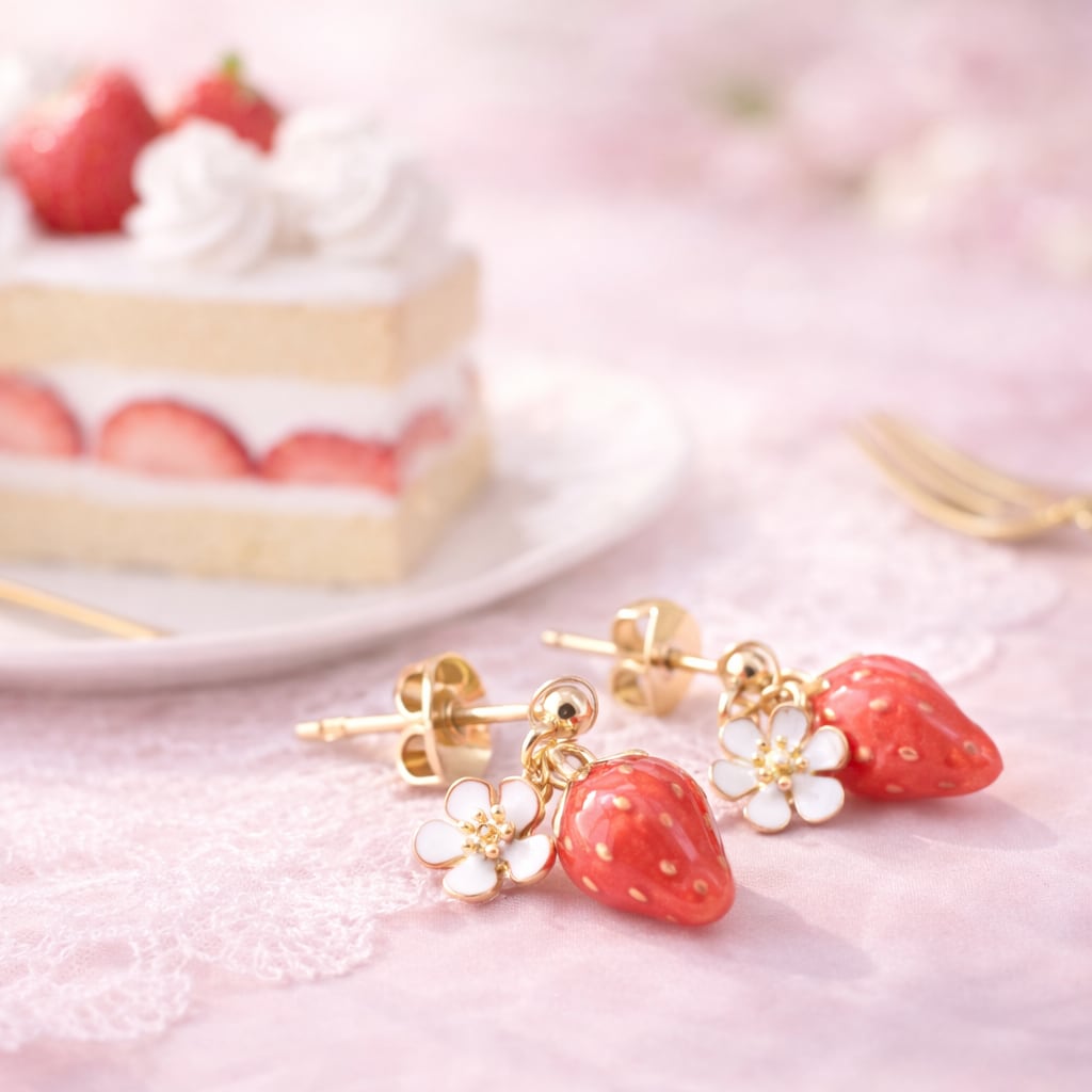 いちごピアス 苺モチーフ フルーツアクセサリー 花モチーフピアス 大人かわいいアクセサリー 大人可愛い フェミニンアクセサリー 上品ピアス 揺れるピアス ゴールドアクセサリー きれいめアクセサリー 大人女子アクセサリー 女性らしいアクセサリー 可憐アクセサリー デートコーデ お出かけアクセサリー 普段使いピアス 春アクセサリー