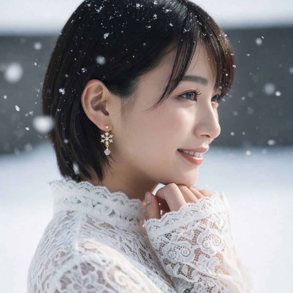 「月明かりに舞う 雪の結晶ピアス」 です。