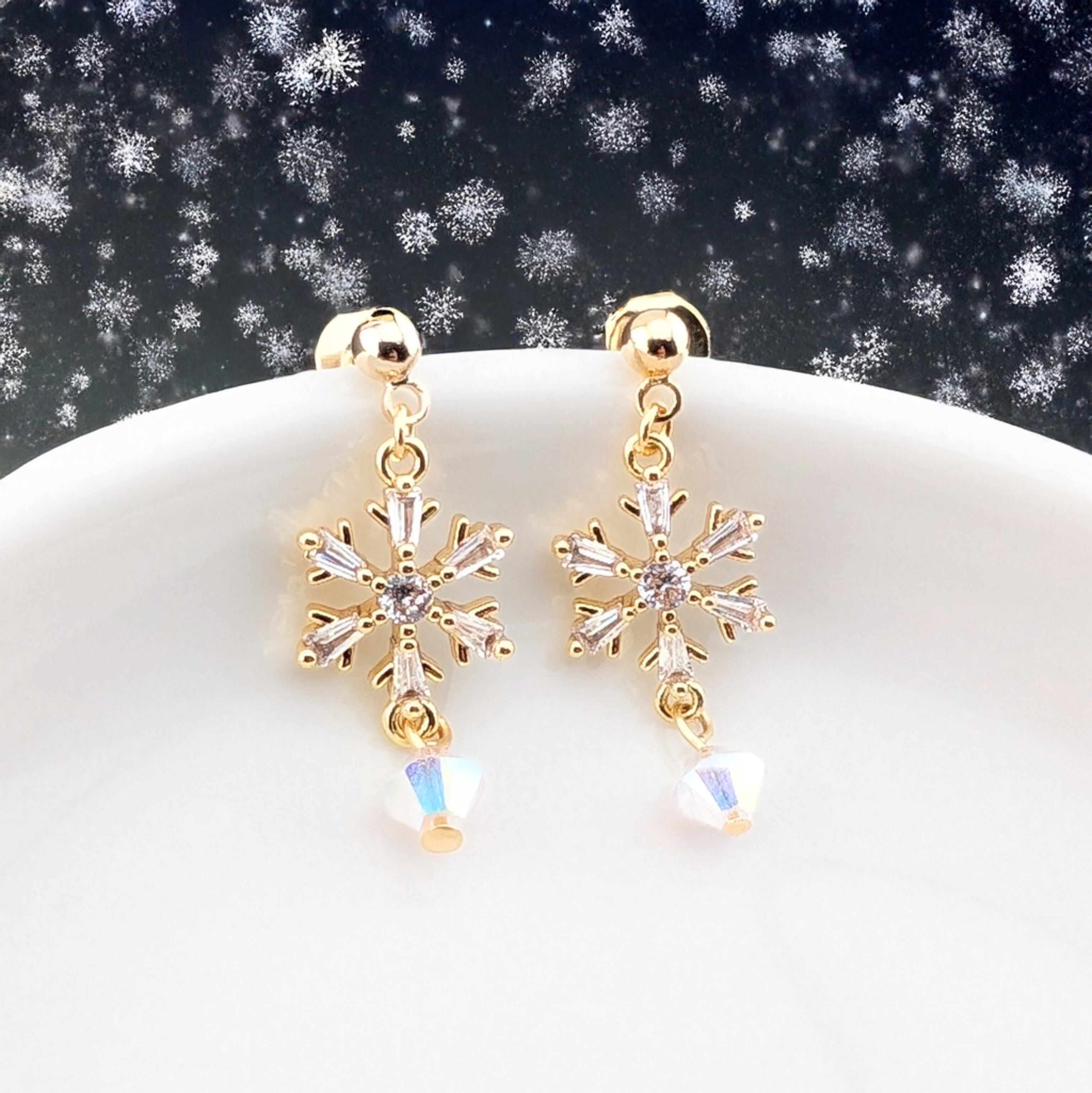 今だけ20%OFF+送料無料 月明かりに舞う 雪の結晶ピアス