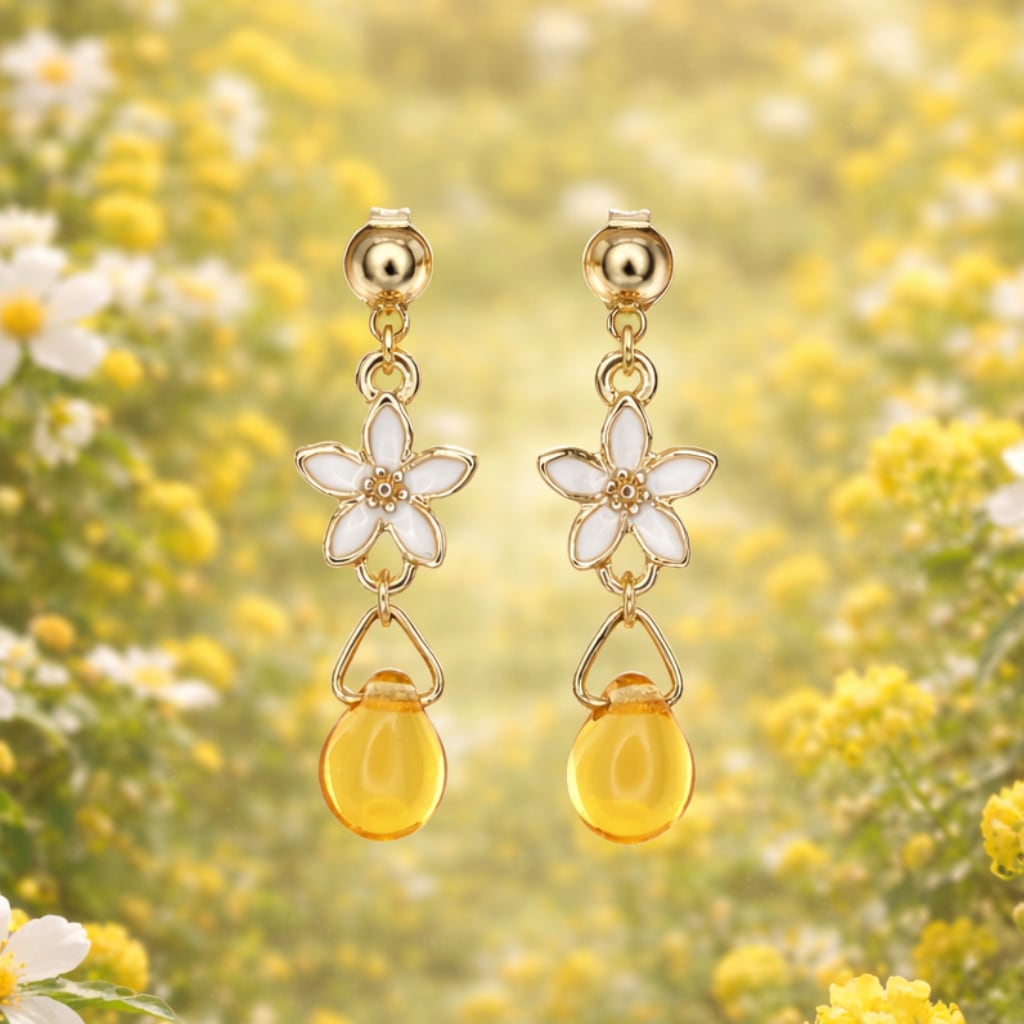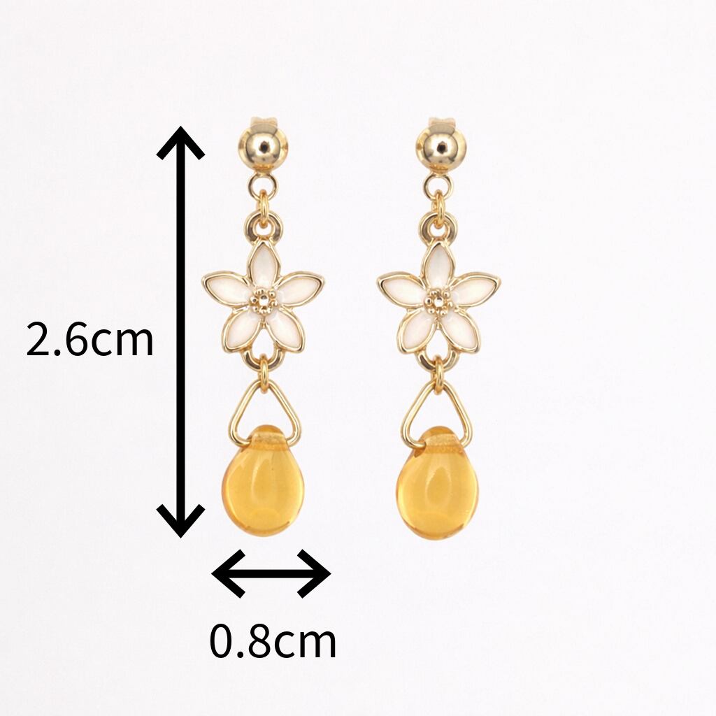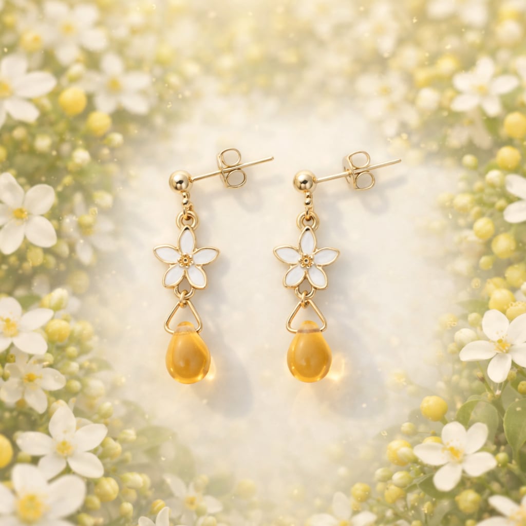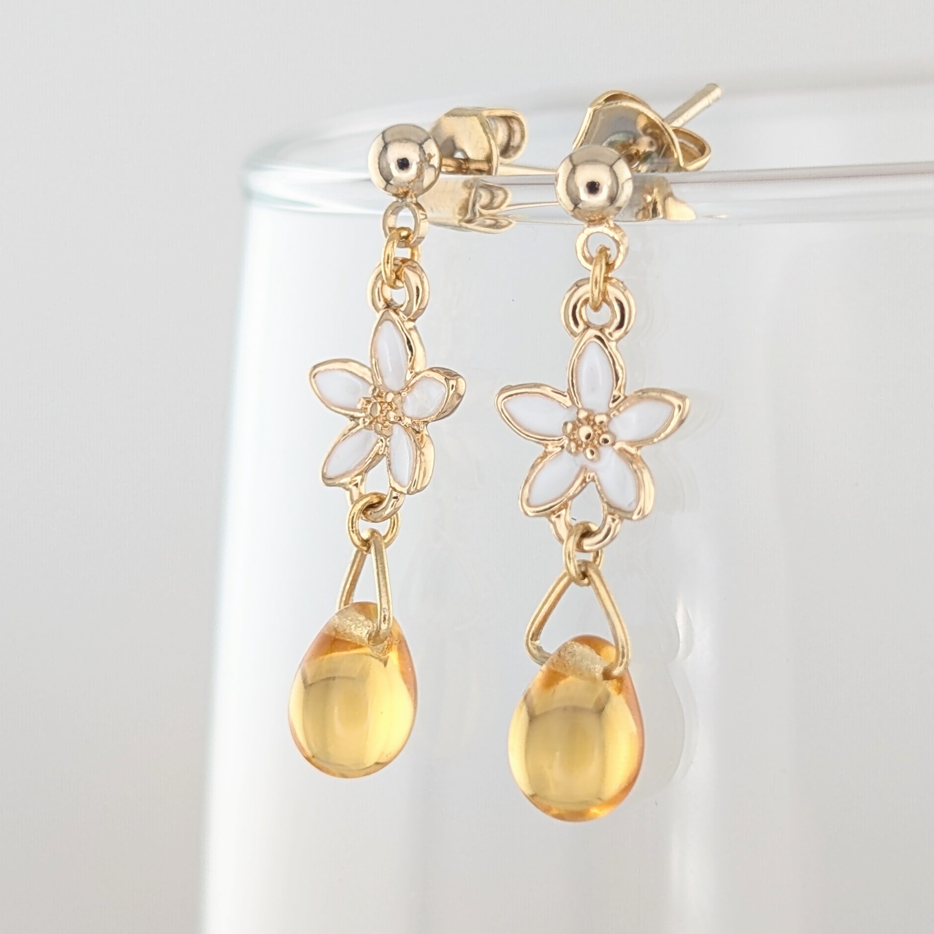レモンの花ピアス|白い小花とハニードロップの揺れるピアス|春夏アクセサリー・ナチュラル・大人可愛い