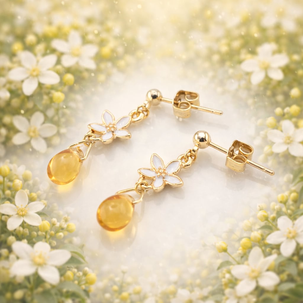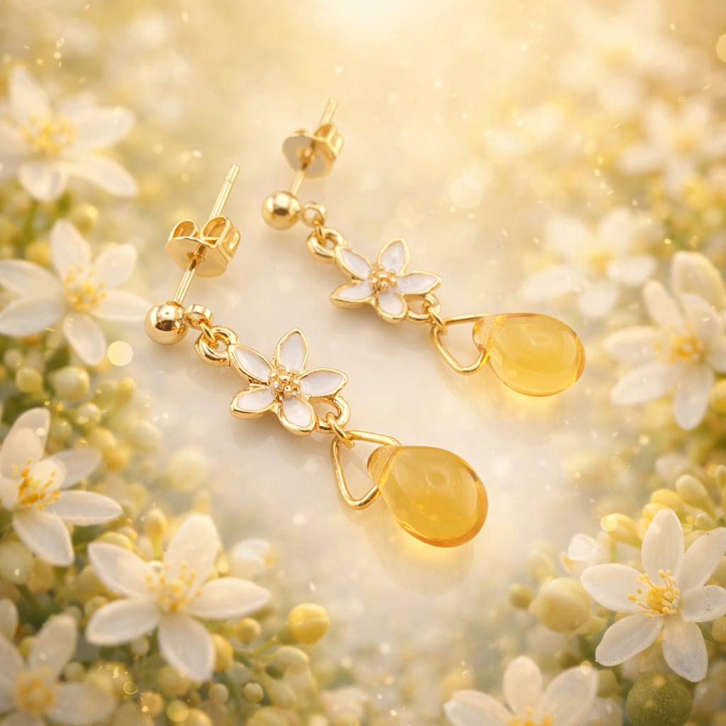 レモンの果実のようなやさしいハニーカラーの雫を合わせました。
